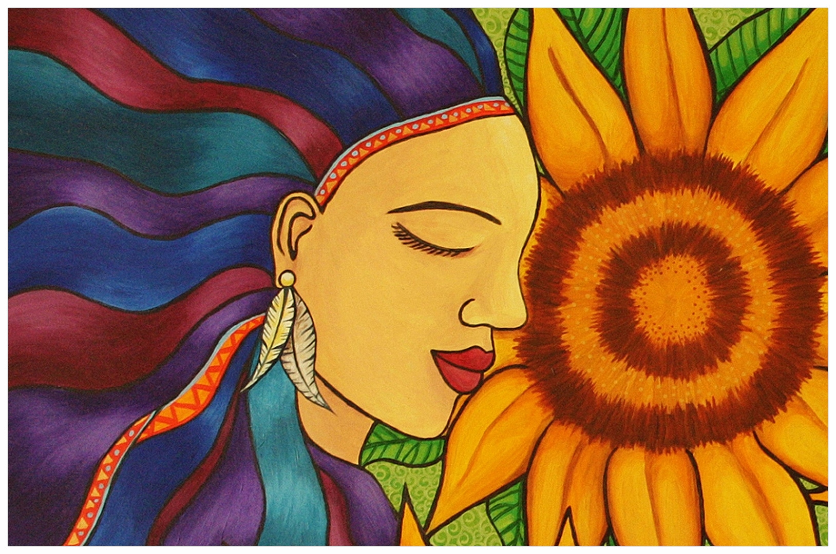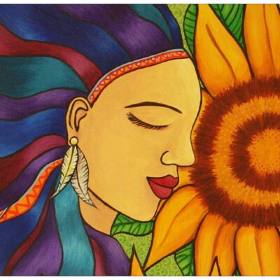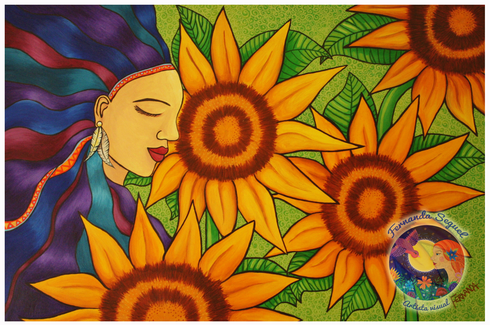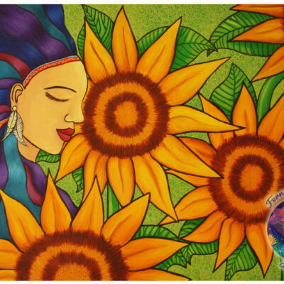 Mujer y girasoles